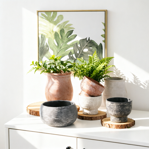 A material shaped by time, crafted by hand from resin or ceramic—reborn through our care and creativity into decorative vessels for your spaces.
